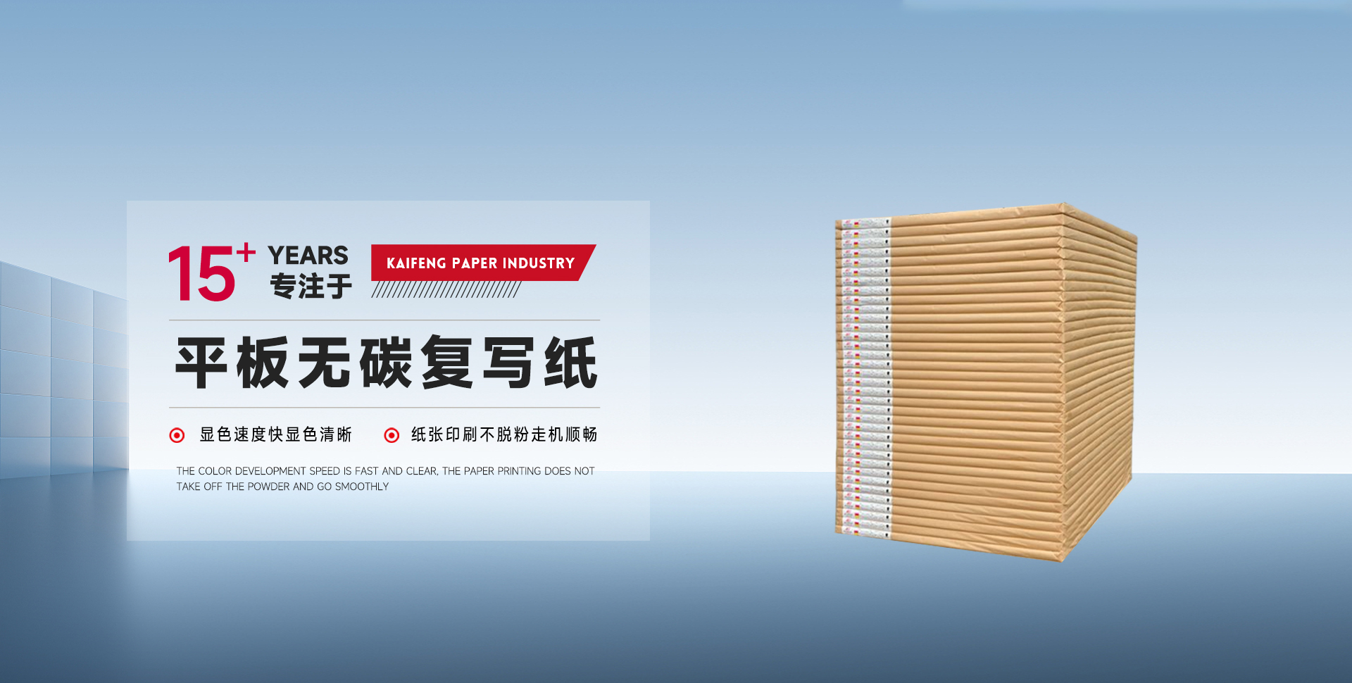 新鄉(xiāng)市凱豐紙業(yè)有限公司于2008年在河南省新鄉(xiāng)縣成立,是一家生產(chǎn)無(wú)碳復(fù)寫(xiě)紙和熱敏紙的民營(yíng)企業(yè)。擁有先進(jìn)的無(wú)碳紙涂布和熱敏紙涂布設(shè)備,年產(chǎn)能3萬(wàn)多噸?! 」局鲗?dǎo)產(chǎn)品無(wú)碳復(fù)寫(xiě)紙、熱敏紙。無(wú)碳復(fù)寫(xiě)紙廣泛應(yīng)用于稅務(wù)、快遞、銀行、商業(yè)等各行業(yè)。熱敏紙廣泛應(yīng)用于票據(jù)、物流、收銀及ATM用紙。公司建立有完善的質(zhì)量管理體系,通過(guò)加強(qiáng)整個(gè)生產(chǎn)過(guò)程中的質(zhì)量監(jiān)控,為客戶(hù)提供更高品質(zhì)的產(chǎn)品?! 」緫{借研發(fā)技術(shù),穩(wěn)定的產(chǎn)品質(zhì)量與良好的商業(yè)信用。產(chǎn)品在東三省、華中、華東、西北、西南等國(guó)內(nèi)市場(chǎng)博得客戶(hù)的好評(píng),公司完善的經(jīng)銷(xiāo)商網(wǎng)絡(luò)更好的服務(wù)全國(guó)客戶(hù)?! 榇鹬x新老客戶(hù)的厚愛(ài),凱豐公司將進(jìn)一步優(yōu)化產(chǎn)品結(jié)構(gòu),擴(kuò)大生產(chǎn),開(kāi)拓務(wù)實(shí),提高產(chǎn)品質(zhì)量,和新老朋友攜手共創(chuàng)輝煌,使我們的明天更美好。歡迎新老客戶(hù)和社會(huì)各界有志之士光臨指導(dǎo)。